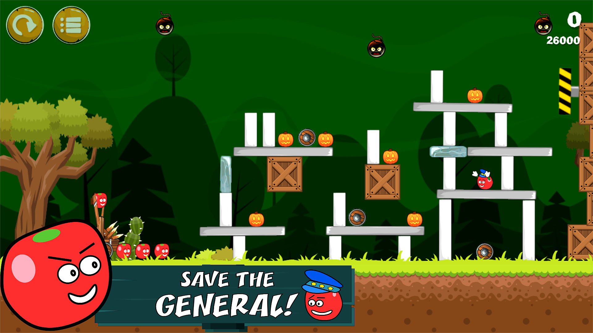 The Pro version of the game has 40 unique levels (with many more to come) . Everything is controlled by physics, so you have to aim in order to win. Your target is the pumpkin.